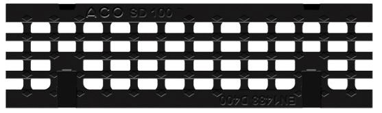 Längsstabgussrost KTL-beschichtet mit schraubenloser Sicherheitsverriegelung Powerlock und integrierter Dämpfung, NW 100, Baubreite 14,3 cm, Maschenweite 27x15 mm, Belastungsklasse D400 - Fahrbahnen von Strassen, auch Fussgängerstrassen, Parkflächen und vergleichbare befestigte Verkehrsflächen