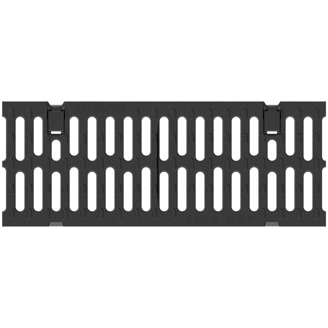 Gusseisenrost KTL-beschichtet mit schraubenloser Sicherheitsverriegelung Powerlock und integrierter Dämpfung, NW 150, Baubreite 19,3 cm, Schlitzweite 14 mm, Belastungsklasse D400 - Fahrbahnen von Strassen, auch Fussgängerstrassen, Parkflächen und vergleichbare befestigte Verkehrsflächen