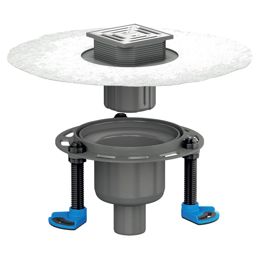 12 Komplettset, 12 x 12 cm, DN50/DN100 senkrecht, inkl. Aufsatz DallDrain Select, und Montagefüsse, 1,3 l/s 47-250 mm