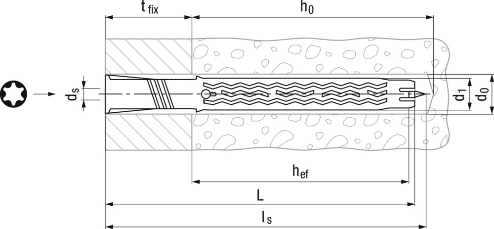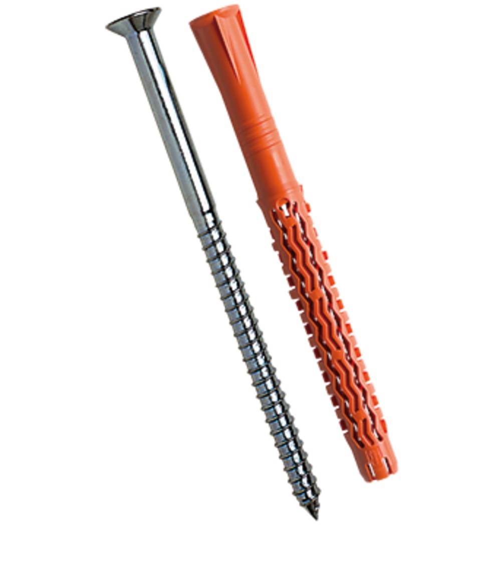 Universal-Fassadendübel aus Polyamid (PA6) mit Senkschraube aus Stahl verzinkt, Antrieb Torx, (D/S) = Masse Dübel / Schraube, Europäische Zulassung ETAG 020, Bewertung unter Brandbeanspruchung F90