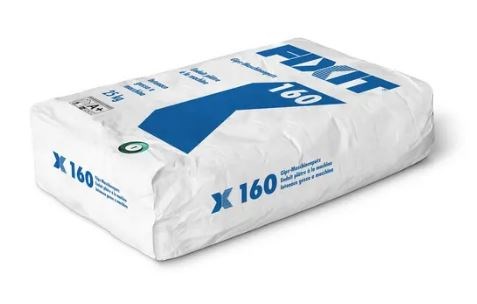 Fixit 160 ist ein Einschicht-Gipsputz zum Glätten für Wände und Decken im Trockenbereich, er kann auch als Gipsgrundputz verwendet werden, als Untergründe sind Backstein, Kalksandstein, Naturstein, Porenbeton und Beton geeignet, auf Beton ist vorgängig die Fixit 341 Quarzbrücke R+S aufzutragen, minimale Schichtdicke 10 mm (auf Betondecken 5 mm), Verarbeitungszeit 60-80 Minuten, Verbrauch ca. 1 kg/m²/mm