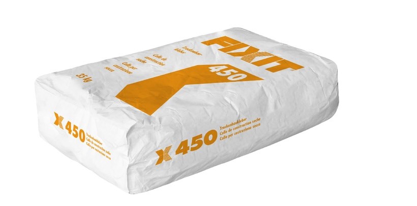 Fixit 450 wird zum Kleben von EPS-, PIR-, Mineralfaser- und Verbund-Dämmplatten (ausgenommen Schaumglasplatten) eingesetzt, auch geeignet zur Aufdoppelung der Wärmedämmung, bei grösseren Unebenheiten des Untergrundes muss vorgängig eine Ausgleichsschicht ausgeführt werden, er haftet auf allen mineralischen Untergründen, auf Kunststoffputzen und angeschliffenen, tragfähigen Dispersionsanstrichen, Verarbeitungszeit 60-90 Minuten, Verbrauch 3-6 kg/m²