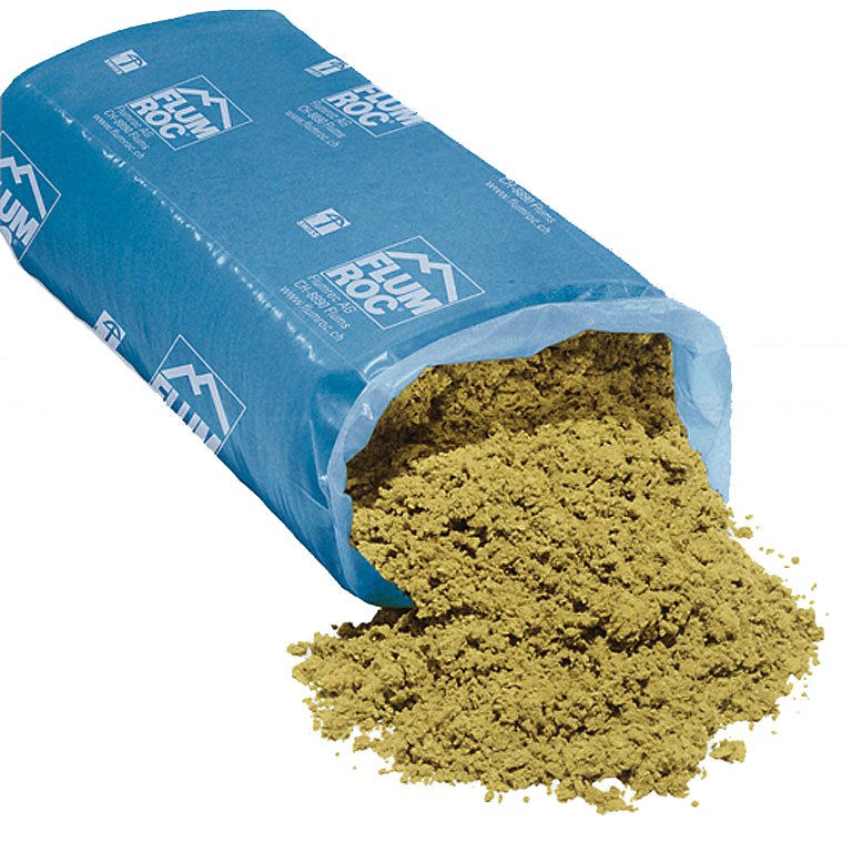 Einsatz in Installationsschächten, zum Füllen von Hohlräumen jeder Art, kann auch mit Einblasmaschinen verarbeitet werden, Technische Daten: Lose Steinwoll-Flocken in Säcken à 15 kg, Wärmeleitfähigkeit: λD 0.038 W/mK, Schüttdichte 90-110 kg/m³, Brandverhalten (EN 13501-1) Klasse A1