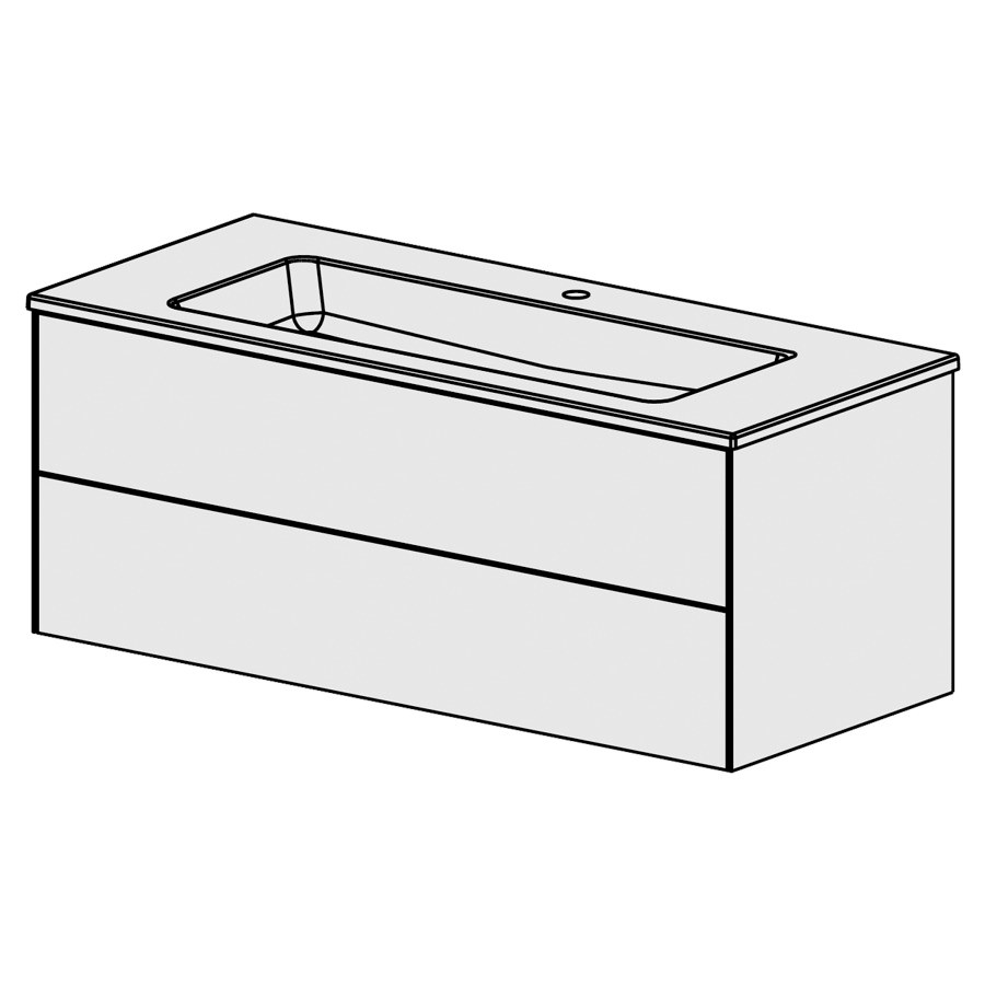 B: 121 / H: 50 / 51.5 cm, mit Keramikwaschtisch, mit überlauf, mit 1 Becken in der Mitte, 2 Schubladen, Tip-On, Front gemäss Palette, Seiten FB gemäss Palette