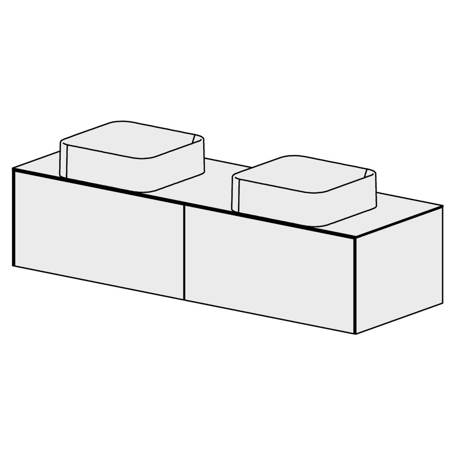 B: 149,6 H: 34.9, T: 50,7 cm, Waschtisch FB, für 2 Aufsatzbecken,, 1 Schublade, Schublade mit Blumotion, mit Tip-on, Front gemäss Code, Sichtseiten FB, Farbe gemäss Palette, inkl. Raumsparsifon und, Steckdichtung 32 mm, ohne Überlauf