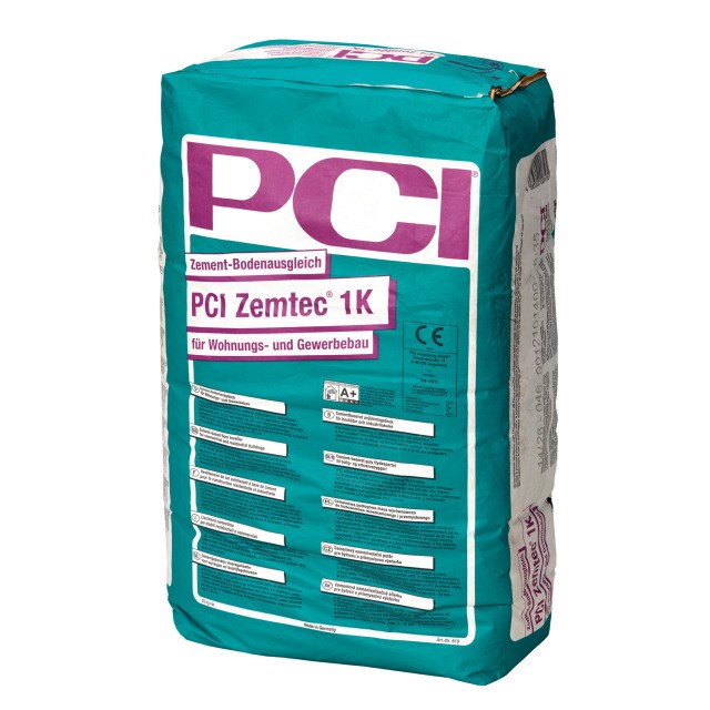 Leicht verlaufender zementärer Bodenausgleich mit hoher Abriebfestigkeit für Wohnungs- und Gewerbebau, zum nivellieren unebener Betonböden und Zementestrichflächen, für Fahrverkehr mit luft- und vollgummibereiften Fahrzeugen geeignet, direkt nutzbar im trockenen Innenbereich z. B. Lagerhallen, Werkstätten, Kellerräume etc., Schichtdicken von 3 bis 30 mm, Verarbeitbarkeitsdauer ca. 30 Minuten, begehbar nach ca. 3 Stunden, überarbeitbar mit PCI Versiegelung nach ca. 24 Stunden, voll belastbar nach ca. 7 Tagen, Verbrauch 1,6 kg/m²/mm