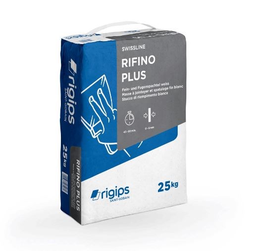 Rifino PLUS Fein- und Fugenspachtel auf Gipsbasis, für Handverspachtelung mit Bewehrungsstreifen, zum Spachteln und Überglätten von Gipsbauplatten, Putzen und Beton, Auftragsdicke 0-5 mm