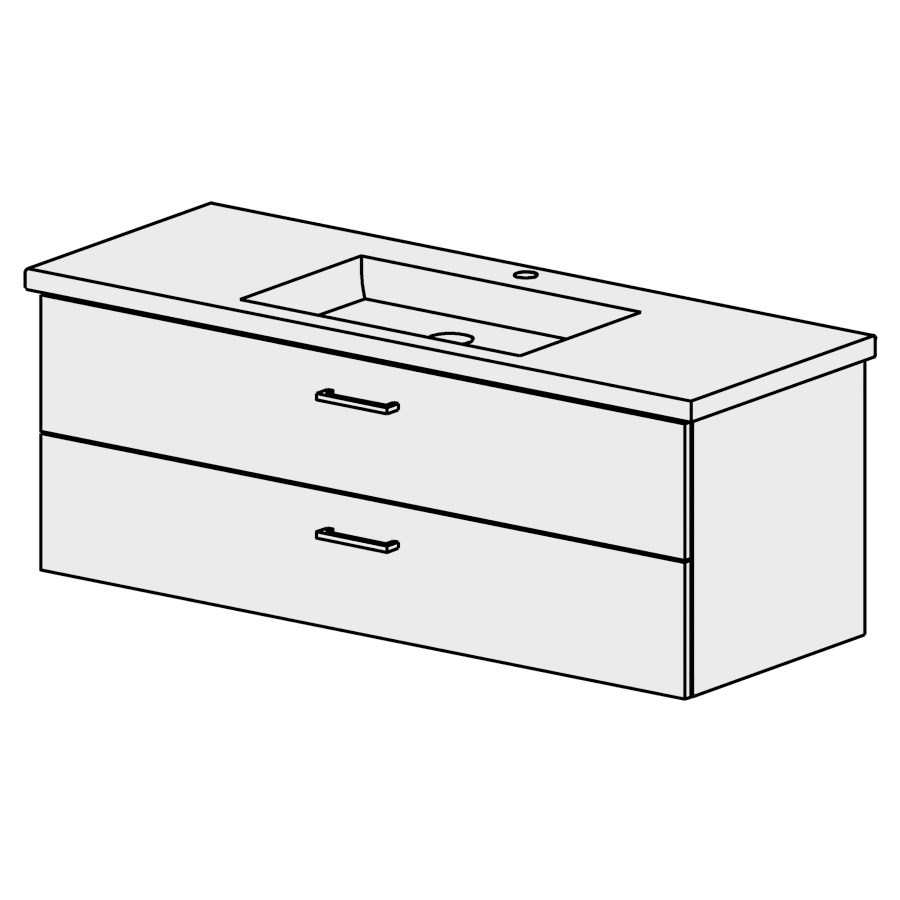 B: 126, H: 46, T: 46,8 cm, Schubladenstock à 2 Schubladen, Schubladen mit Blumotion, Griffe gemäss Palette, Fronten/Sichtseiten gem. Code, Farbe gemäss Palette, für Raumsparsifon und, Steckdichtung 32 mm
