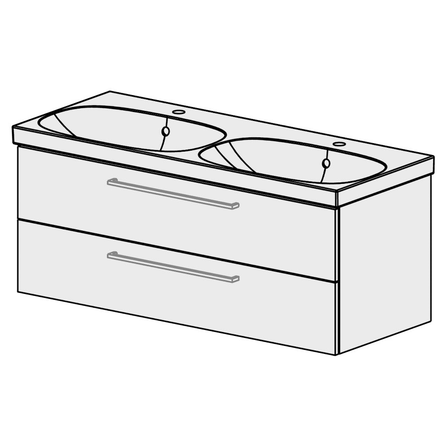 60 cm,B: 57, H: 46, T: 45,8 cm, Schubladenstock à 2 Schubladen, Schubladen mit Blumotion, Griffe gemäss Palette, Fronten/Sichtseiten gem. Code, Farbe gemäss Palette, für Raumsparsifon und, Steckdichtung 32 mm