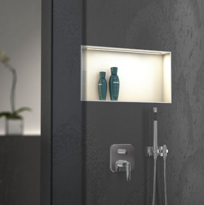 Die wedi Sanwell Nische ist ein werkseitig vorgefertigtes Wandelement für die individuelle Verfliesung. Sie ist wasserdicht, ein aufwendiges Konstruieren und Abdichten ist nicht mehr notwendig. Dabei sind die wedi Sanwell Nischenlösungen zugleich praktisch und ästhetisch. Ihre großzügige Formgebung unterstreicht den extravaganten Charakter in einem Bad und dient zudem als bequeme Ablagefläche. Besonders im kleineren Gästebad bieten sie Extraplatz für eine Vielzahl von Duschutensilien oder persönlichen Dekorationsideen. Innenmass 334 x 634 x 70 mm